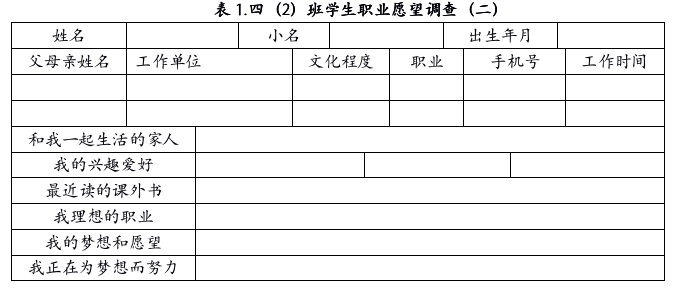 通过全班交流,拓宽了学生的视野,“终身学习”的理念开始融入学生的生活,学生在家庭中宣传“每个人都是终身学习者”。于是,第二次小调查“父母的职业是什么?我们的梦想是什么?”两个问题,引导学生了解忙碌的父母工作时间、环境及他们从小的梦想,同时,引导学生梳理目前职业的局限及努力方向。(见表1)