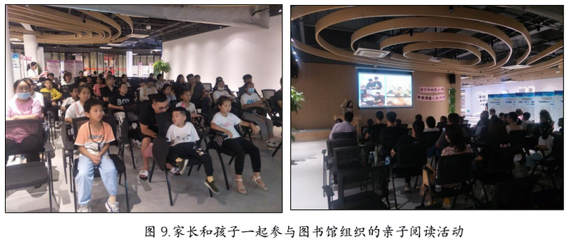 其次,家校社利用学习型城市的优质资源,为学生和家长提供学习场所、资源和榜样。如,种子家庭在第一次家长会后,陆续到海宁图书馆为孩子办了借书证,鼓励孩子每周去图书馆借书,解决了孩子阅读材料问题;第二,教师利用图书馆和社区阅读场地资源,组织家长交流会和亲子读书会,以促进家庭阅读的推进;第三,借助本地公共文化资源,创设亲子学习机会。(见图8)