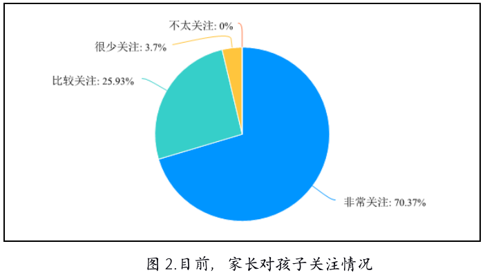 70.3%的家长能“非常关注”孩子的学习,也是目前班级中对孩子比较关心的家长。他们每天回复消息,关注孩子回家学习和作业情况,这也是整个班级推进“家庭学习”的重要源动力。而后进部分家长仍然忙于工作,让孩子处于随意的“散养”状态。(见图2)