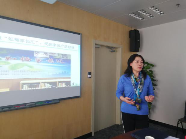 昆山市兵希小学的陆丽梅副校长的报告主题是《志愿者课堂——打造家长终身学习新途径》。她在介绍完该校志愿者课堂的基本情况之后,重点围绕“家校社田园课堂”项目,分享了该校推进家校社合作的成功经验。