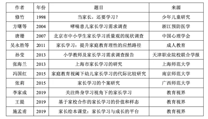 以中国当前最大的知识文献数据库(CNKI)为检索平台,以家长学习为检索题目,发现家长学习这一主题的研究在浩如烟海的文献中呈现寥寥无几的单薄状态。