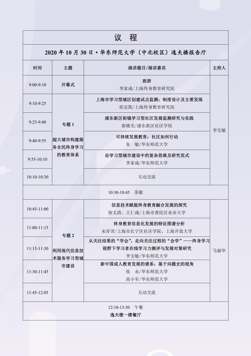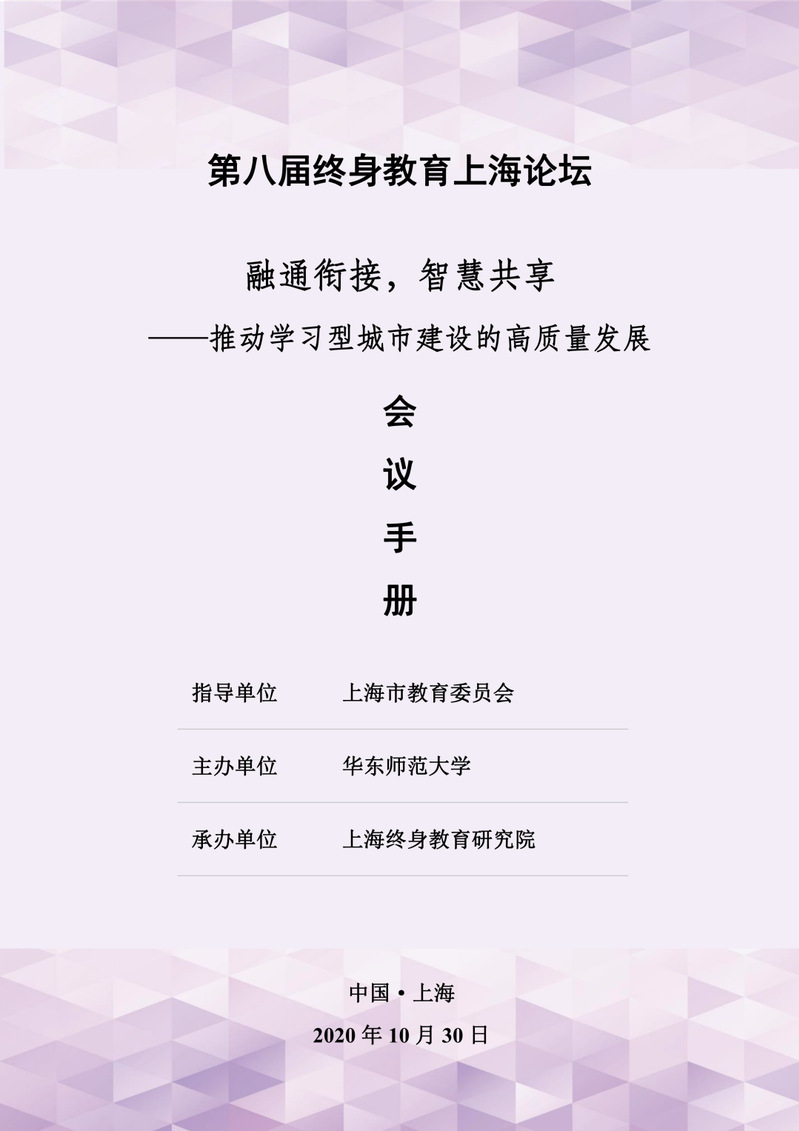 第八届终身教育上海论坛将于10月30日在华东师范大学(中北校区)逸夫楼报告厅举行,此次论坛由上海市教育委员会指导、华东师范大学主办、上海终身教育研究院承办,现将「论坛议程」提前推送,期待大家的到来!