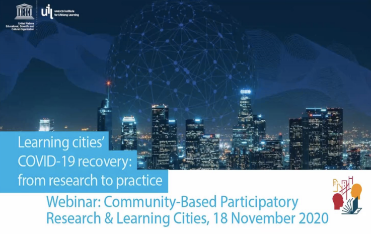 2020年11月18日晚,联合国教科文组织终身学习研究所(UNESCO Institute for Lifelong Learning)和帕斯卡国际瞭望台(PASCAL International Observatory)联合举办了“基于社区的参与式研究和学习型城市”网络研讨会。本次研讨会由英国格拉斯哥大学(University of Glasgow)Catherine Lido博士主持,联合国教科文组织终身学习研究所项目主任Raúl Valdés Cotera致辞,来自相关城市、高校、研究机构和国际组织的代表参会。会议中,联合国教科文组织基于社区教育研究与高等教育的社会责任处创始人兼主席Rajesh Tandon 先生、上海终身教育研究院执行副院长李家成教授和博士后江娜、印度PRIA 主管Kaustuv Bandyopadhyay 先生、意大利萨萨里大学(University of Sassari)Andrea Vargiu 教授、南非德班理工大学(Durban University of Technology)Darren Lortan教授等人作了主旨发言。