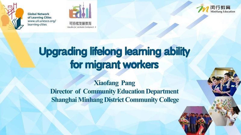 以下,是上海市闵行区社区学院庞晓芳老师的分享内容——《提高进城务工人员的终身学习能力》。