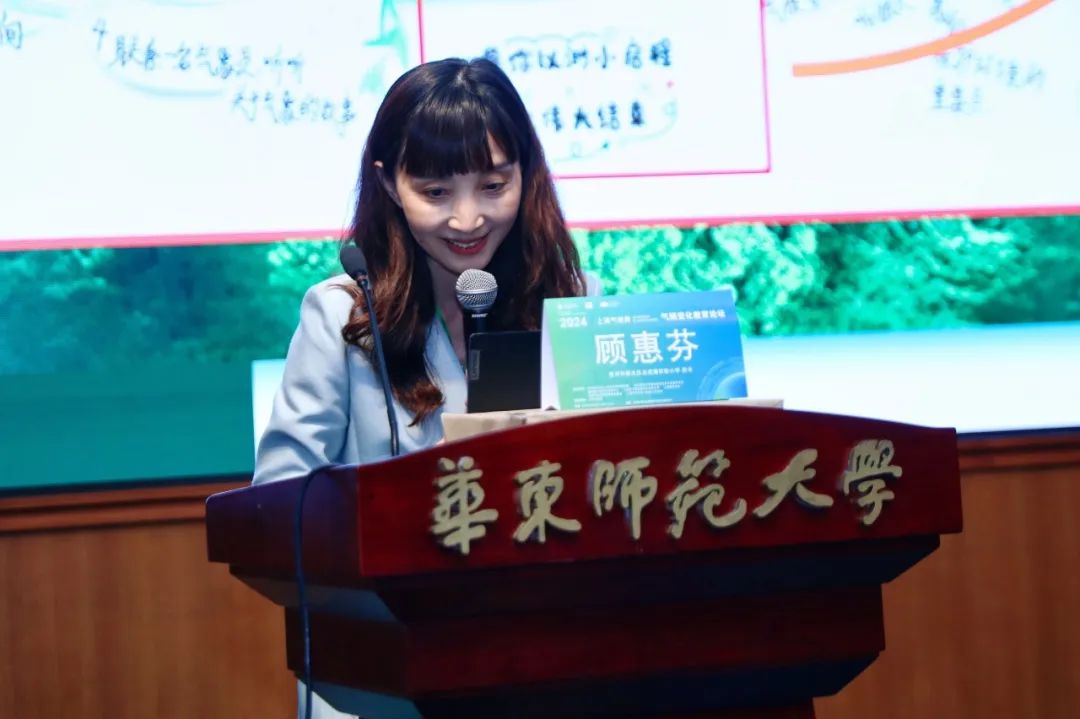 上海市临港实验中学董雪梅老师做了题为《市、区工作室项目驱动 “气候变化教育”的实践研究》的分享,从研究背景、研究目的、研究内容、研究过程以及成效与反思五个方面进行汇报,并引用普纳姆的话“教育是推动变革的有力催化剂!”作为结尾,指明教育在发展气候变化素养、培养行为改变和采取集体行动方面发挥着关键作用。