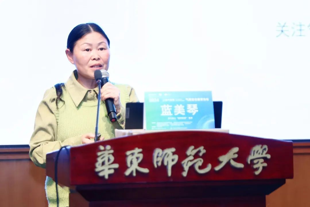 上海市闵行区七宝镇社事办陈金凤主任以《开展气候变化教育的镇域经验与思考》为主题,聚焦七宝镇的具体实践,从“学校教育、社区教育和企业参与”三个方面进行阐述,强调了气候变化教育不仅关乎学校教育,更是涉及每个居民的重要议题,需要家庭、社区和企事业单位的共同投入与努力,为如何推动气候变化教育拓宽思路,提供了宝贵的镇域经验。