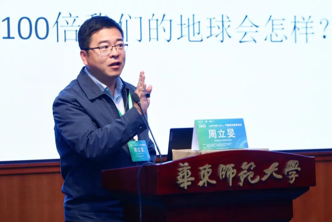 华东师范大学地理科学学院周立旻教授就数智驱动的气候变化教育实践进行了深入的阐述。他提出了对当前数字时代教育的一些批判性思考,强调了正确理解气候变化科学基础以及跨学科学习的重要性,并希望未来能在中小学层面强化气候变化教育的辐射和服务。