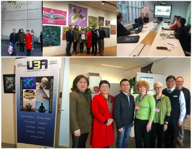 随后,考察团一行访问了墨尔本市“第三年龄大学”(U3A),了解了该机构的运行机制,以及他们为当地老年人群提供学习机会而设置的各类特色课程情况。考察团还走访了位于墨尔本市中心的州立图书馆和市立图书馆,实地调研了各级图书馆服务市民终身学习的实践经验;访问了维多利亚州“成人教育中心”(CAE),详细了解了该中心的功能、各类成人技能课程及其在全球开展的业务活动。