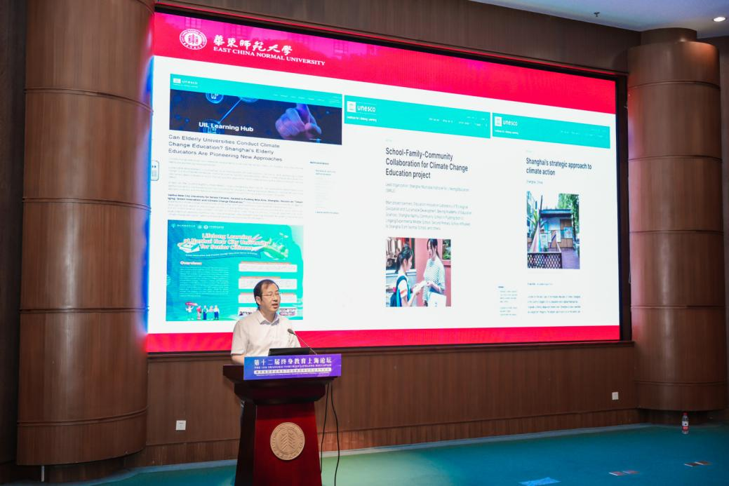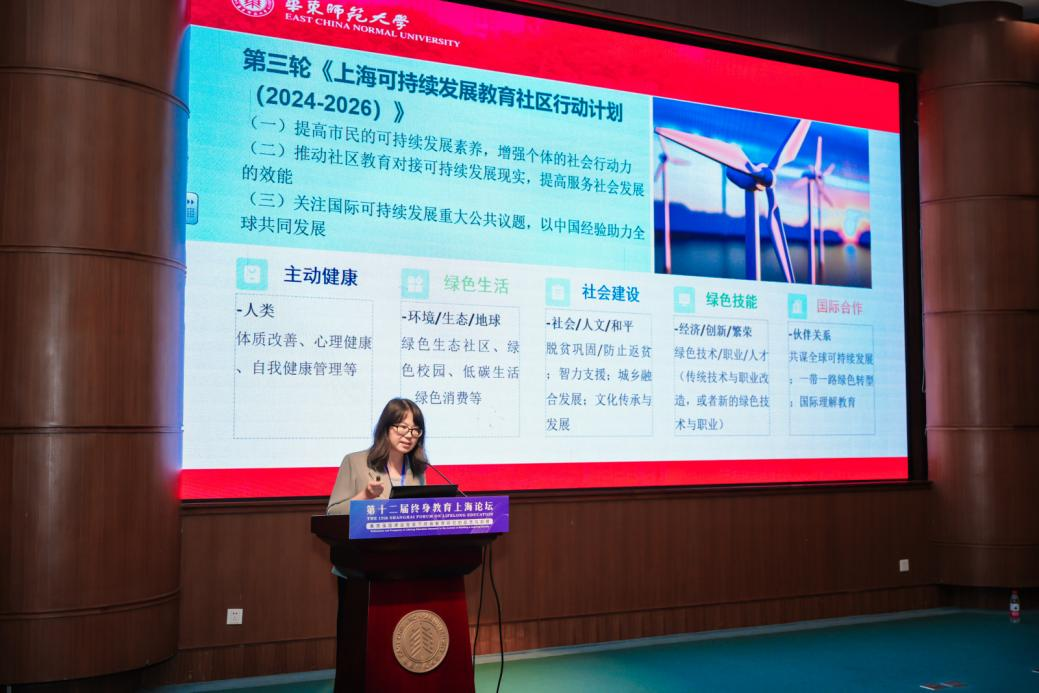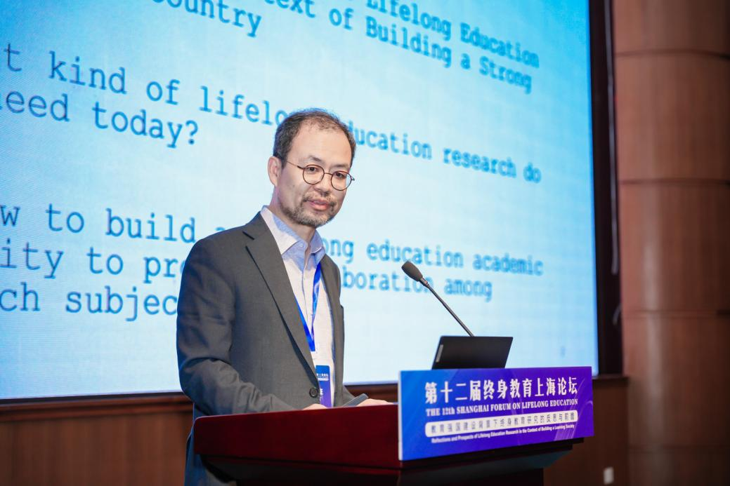 上海市教委终身教育处处长闫鹏涛在主旨报告中详细介绍了上海在终身教育领域的最新进展与未来规划。闫处长指出,上海的学习型城市建设与终身教育研究紧密相连,具有“科研引领、实践创新”的特点,依托社区教育、老年教育等多领域的探索,并结合终身教育的数字化转型,形成了从基层社区到高校助力,从线下实践到数字化平台的全方位终身教育体系。同时,上海还积极开展终身教育的国际交流与合作,牵头全球学习型城市网络的可持续发展教育项目,在可持续发展、气候变化教育等领域形成了一系列蜚声国际的科研成果,国际影响力持续增加。闫处长在报告最后也呼吁各方共同努力,持续推动上海学习型城市建设,支持华东师范大学上海终身教育研究院建设成为具有世界影响力的研究机构,助力教育强国目标的实现。