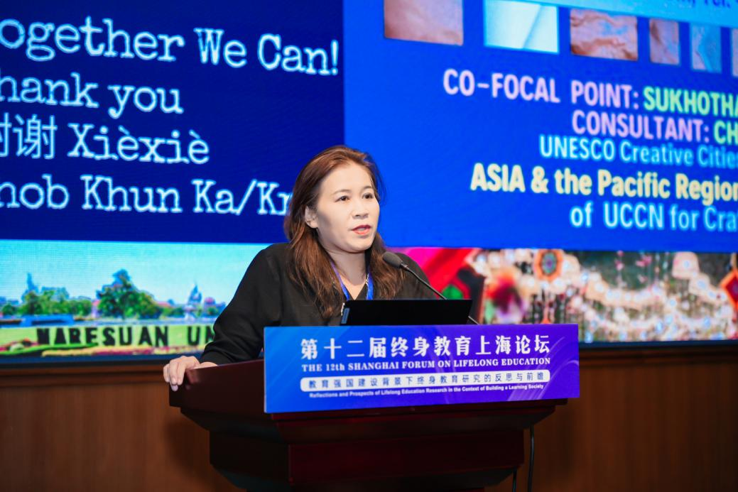 来自泰国那黎宣大学的Witiya Pittungnapoo教授分析了泰国素可泰地区的高等教育机构在构建学习型社会中的角色,提出了通过文化和创意促进可持续发展的理念。