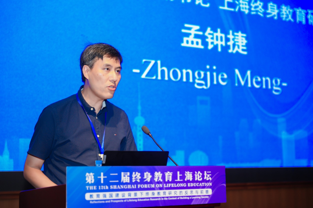 在开幕致辞中,华东师范大学党委副书记、上海终身教育研究院院长孟钟捷指出,作为新中国成立后组建的第一所社会主义师范大学,华东师范大学始终积极顺应时代需求,在终身教育领域承担着重要责任。近年来,学校以更大的力度投身国家和上海的终身教育和学习型社会、学习型城市建设实践,服务全民终身学习需求,取得了不少新的进展。目前学校逐步建成了从学前教育、基础教育、高等教育到老年教育,从普通教育到职业教育、继续教育,涵盖学历教育和非学历教育的较为完整的终身教育人才培养体系,并依托教师发展学院(开放教育学院)、上海市终身教育师资培训基地、教育部中学校长培训中心等专门机构,形成“职前-职后”贯通培养模式,以更好服务国家和上海全口径教师的专业成长和终身学习。
