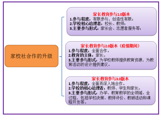 如何提升家校社合作的品质呢?《家长教育参与:实现学校治理的品质升级》一文从学校治理升级的角度介绍了家长教育参与三个版本的特征。