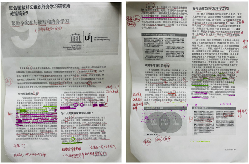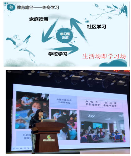 再结合《联合国教科文组织终身学习研究所政策简介9》鼓励家庭读写项目实施的建议,我觉得作为学校教育工作者,我们可以将“家庭读写”项目作为“学习型家庭”建设的重要内容来进行推进,带动家长更加积极地投入到学校治理中,以此促成学校课程的开发,学校文化的建设。9月17日,我们一年级新生家长会,既有年级层面集中交流,又有班级层面集中交流。作为刚步入一年级的学生家长,“一年级新生家长”的身份为我们学校推进“学习型家庭”打开了一个理由很充足的切入口。从施英博士《让亲子阅读成为一种习惯》的互动讲座为家长开启家庭阅读提供实践支架,钱校长的学校文化内涵的解读让家长深入了解学校课程的设置的背景与发展愿景。我与家委会会长张燕女士合作,分别从宏观、中观和微观层面与新生家长交流了家校社合作的话题,我主要聚焦教育身份、教育目的和路径,从“终身学习”的角度解读了“学习型家庭建设”的重要性,不论是从儿童的权利(“每位儿童都应有权成为一个共同学习的家庭中的一份子,并有权拥有有文化的父母、祖父母和监护人。高质量的项目使监护人成为优秀的父母和雇员。”),亦或是家庭读写项目的益处(1.“加强父母和儿童之间的联系,加强家庭、学校和其他机构之间的联系,使邻里关系更为密切,从而建立更加稳固的社区。” 2.“还有证据表明,参加读写项目的家庭中的儿童提高了阅读技能和考试成绩,他们辍学率也比较低。” 3.“此类项目对于成年人的益处也十分明显:参加家庭读写项目的父母比那些只参加成人教育项目的父母更有可能完成其项目,因此他们也会有更多的机会获得与学术和工作有关的技能,并以此来改善其家庭和个人的境遇。”)来看,这个项目都值得大家心动。我阐明了“生活场即是学习场”的观点,表达了指向3.0版本的家长教育参与的后期家校社合作的新路向。张女士从自己作为家长的身份出发,将自己的教育理念以及五年来是如何参与班级活动和学校教育的过程以活动案例的形式一一呈现,这种现身说法深深吸引了在座新生家长的目光。